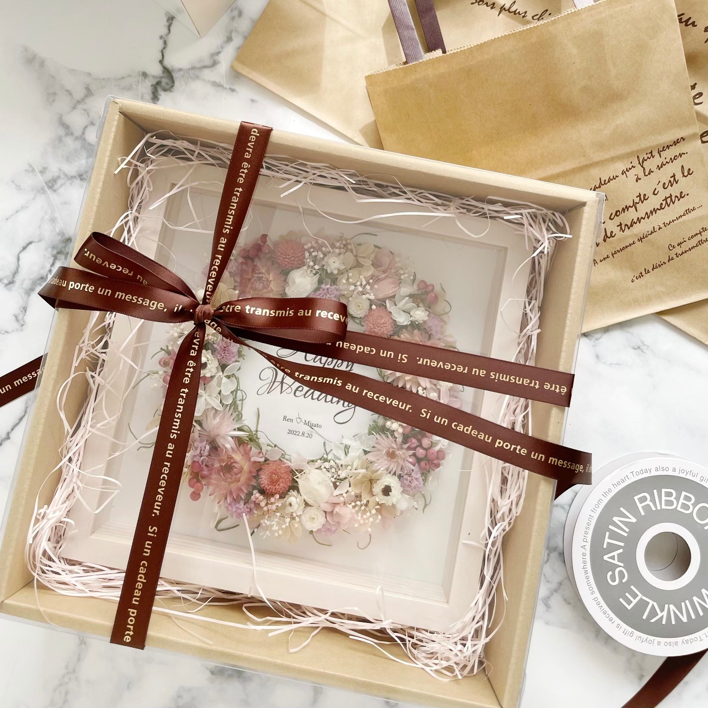 フランス語の書かれたトレーシングペーパーがオシャレ度を引き立てます。22センチのフレーム、ドライフラワーリースに対応しています。