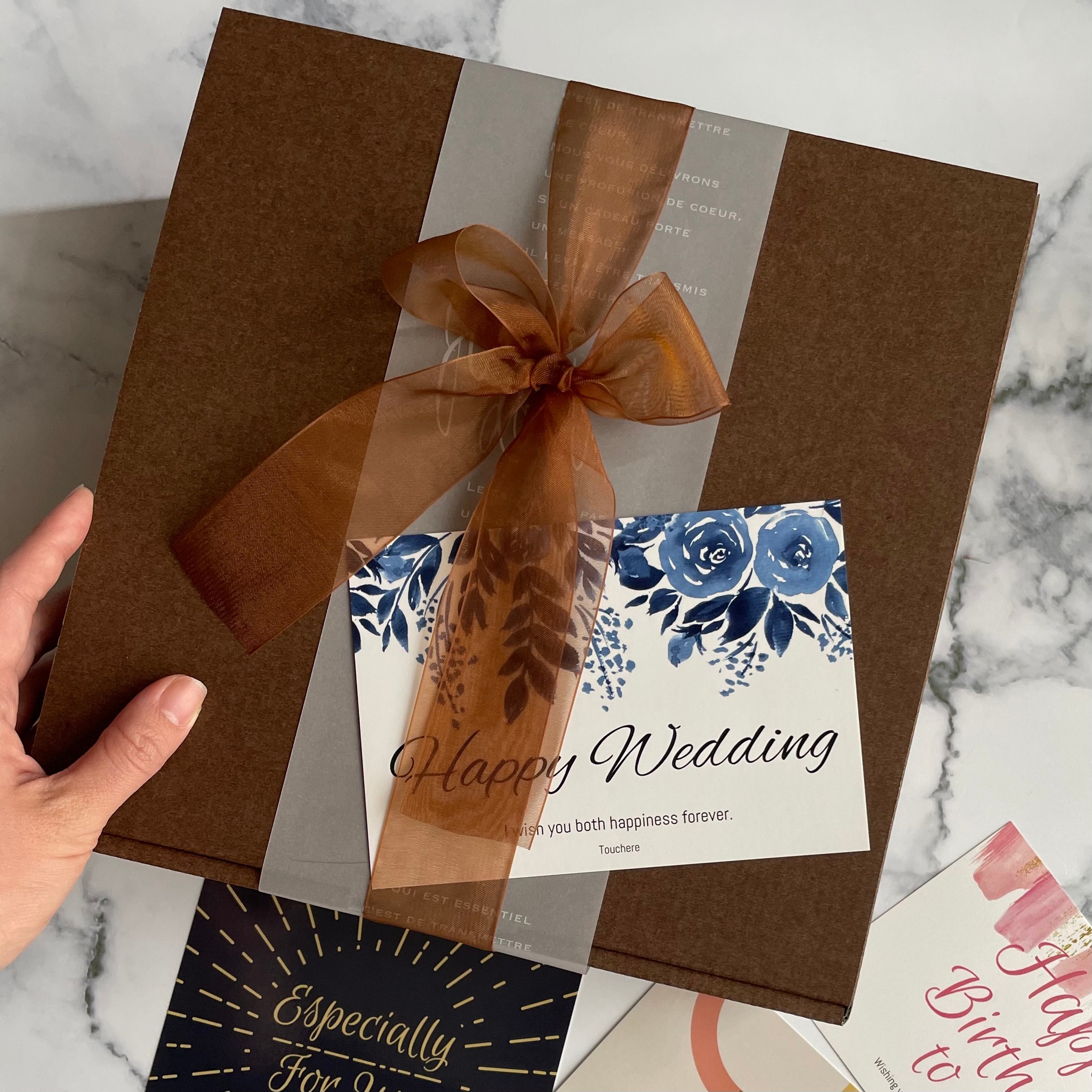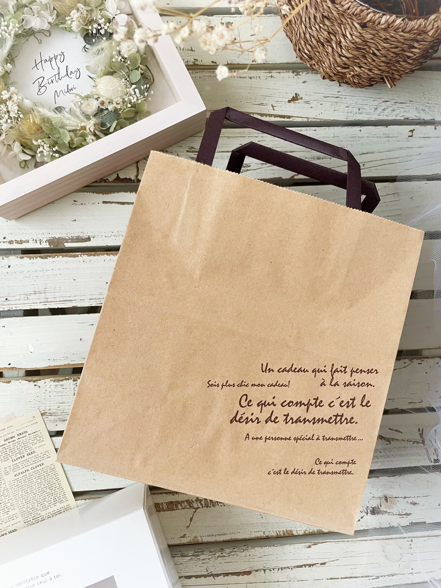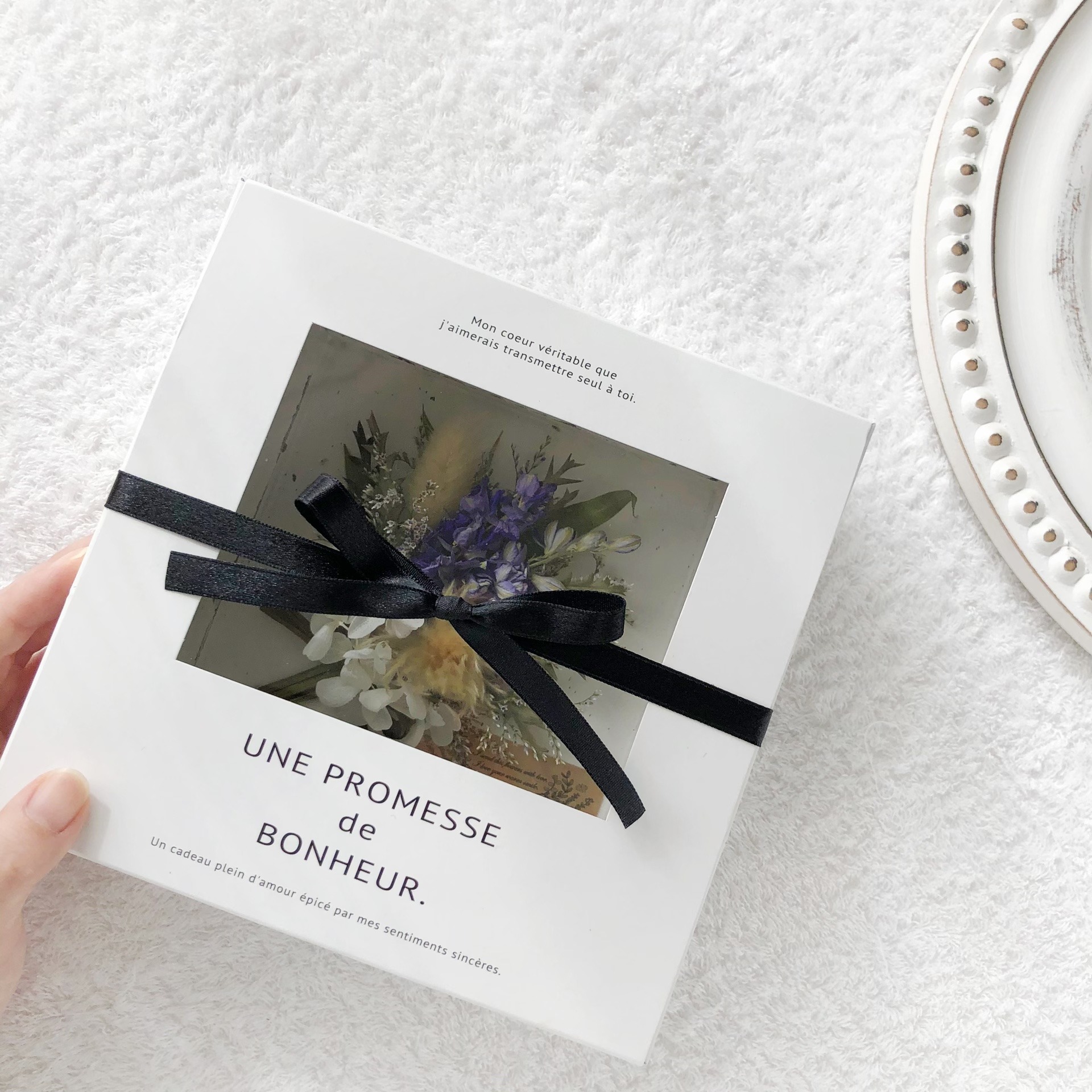 フランス語フレーズが書かれた素敵なギフトボックスでプレゼントはいかが?シンプルなモノトーンのデザインがオシャレとご好評いただいています。