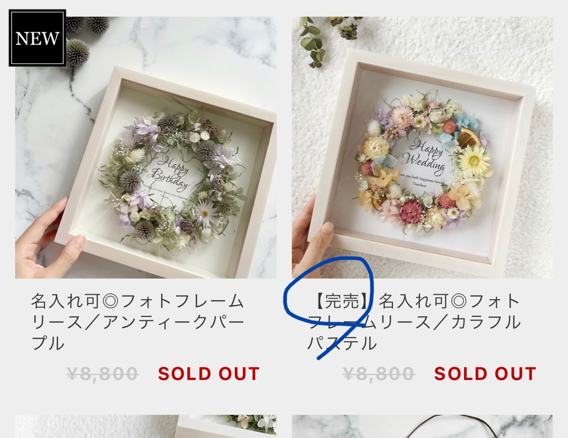 品切れ(SOLDOUT)の作品は、花材が不足しているなどの理由で在庫を入れておりません。