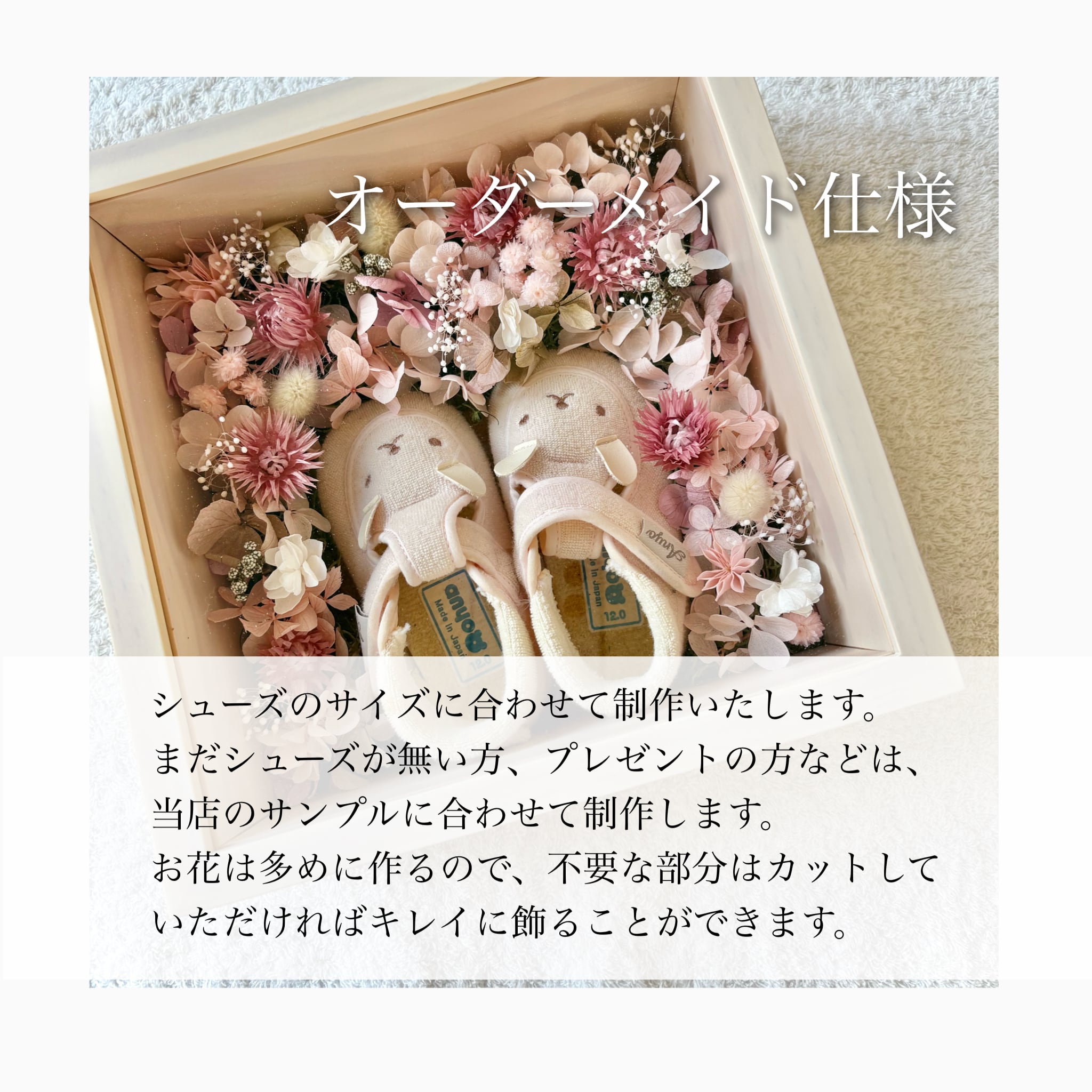小さな靴をお花畑に飾り、親御様の手で最後の仕上げを。