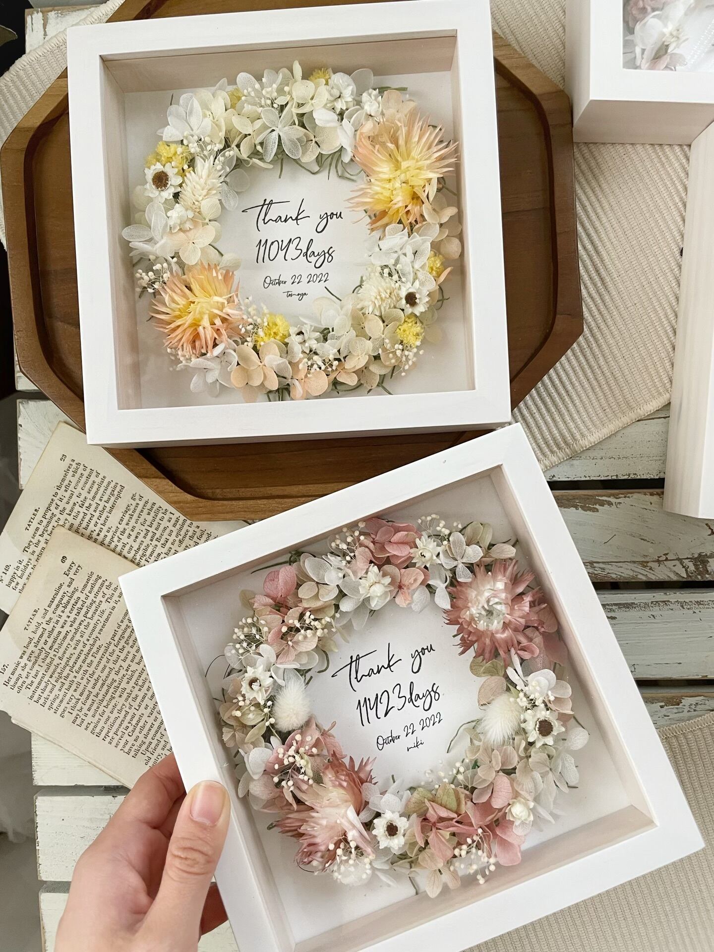 お花はプリザーブド加工されたものや長持ちしやすい花材をお選びしております。
