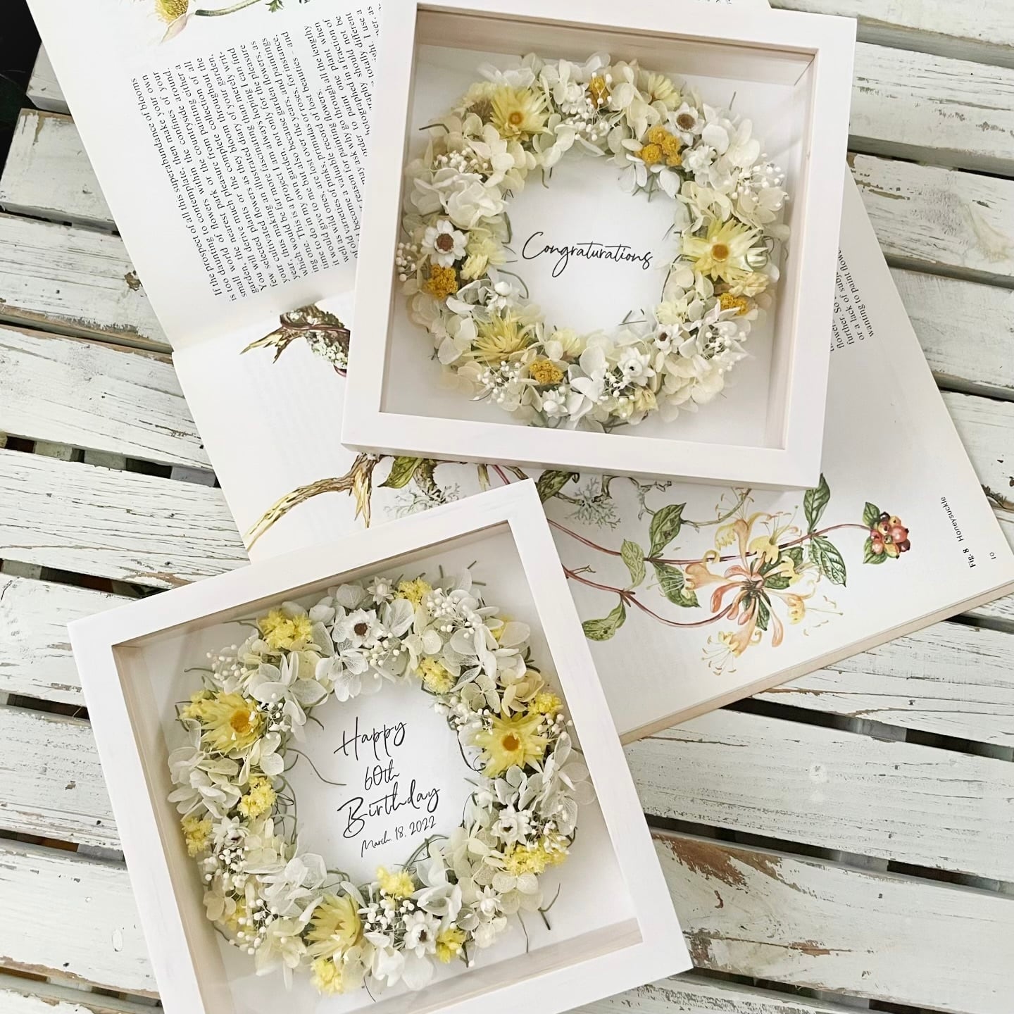 ■素材:ドライフラワー/プリザーブドフラワー/前面アクリル板付き木製フレームボード