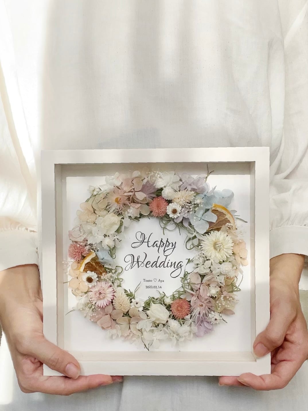 ■素材:ドライフラワー/プリザーブドフラワー/前面アクリル板付き木製フレーム