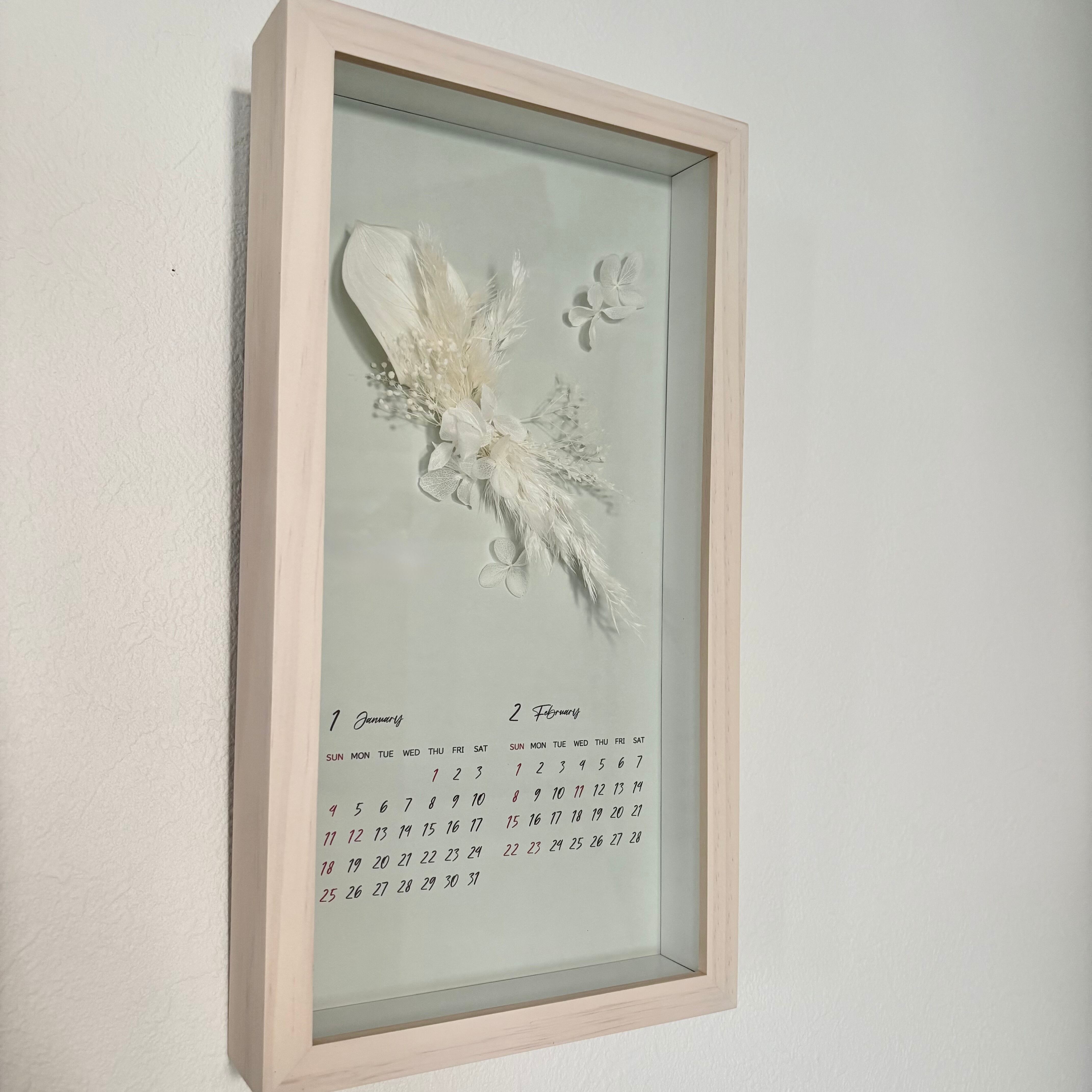 2ヶ月カレンダーにホンモノの植物を