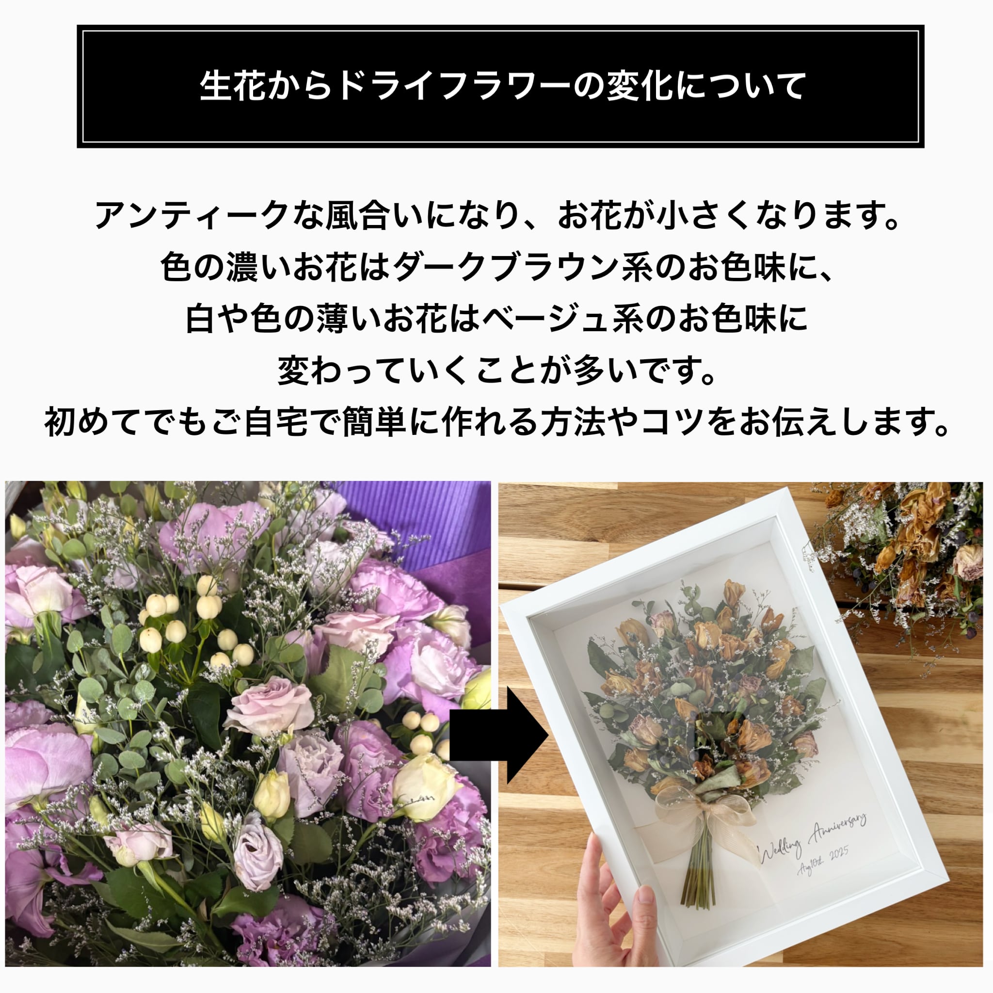 【お手持ちのお花で作る】アフターブーケフレームアレンジ