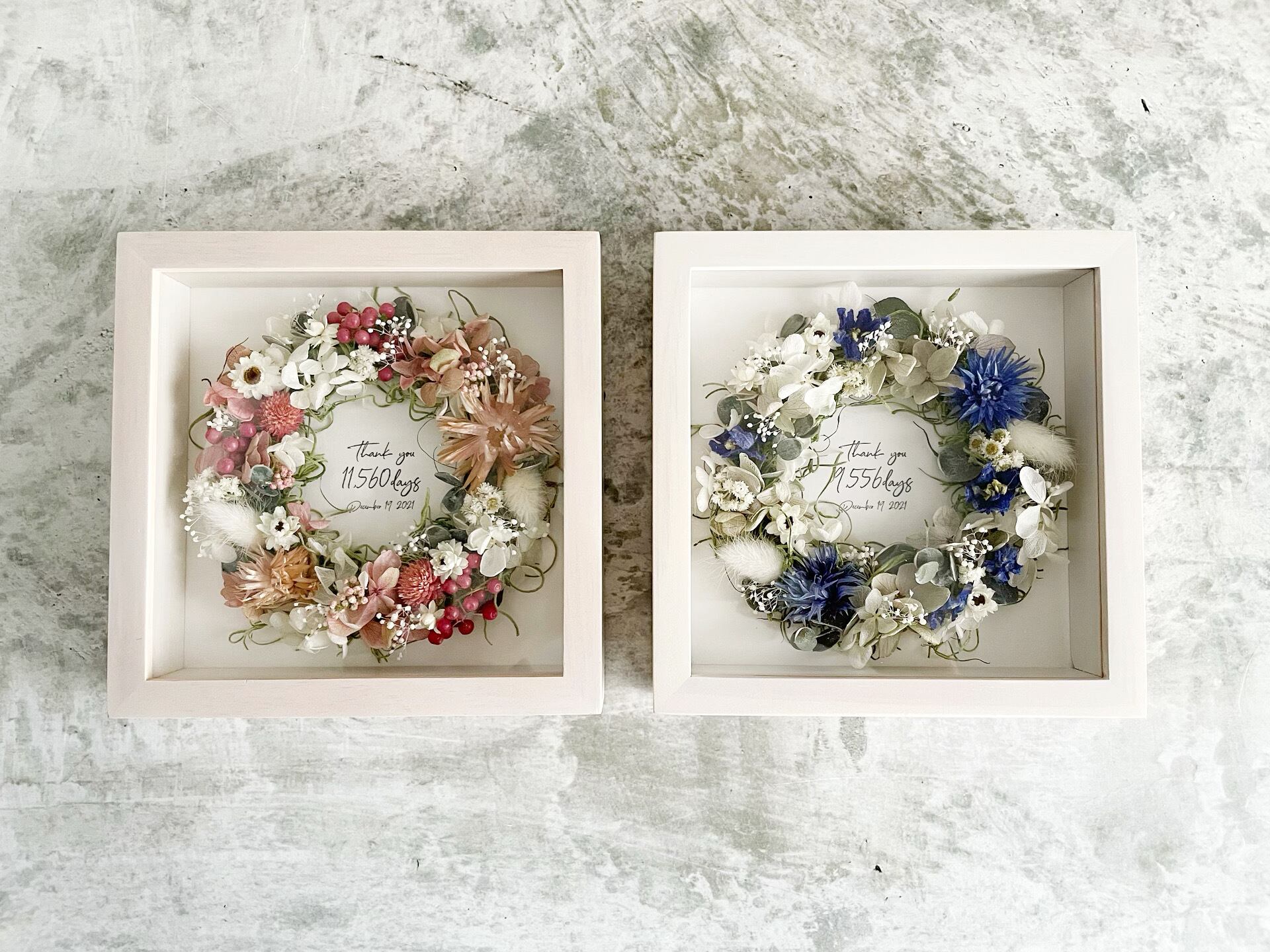 ■素材:ドライフラワー/プリザーブドフラワー/前面アクリル板付き木製フレームボード