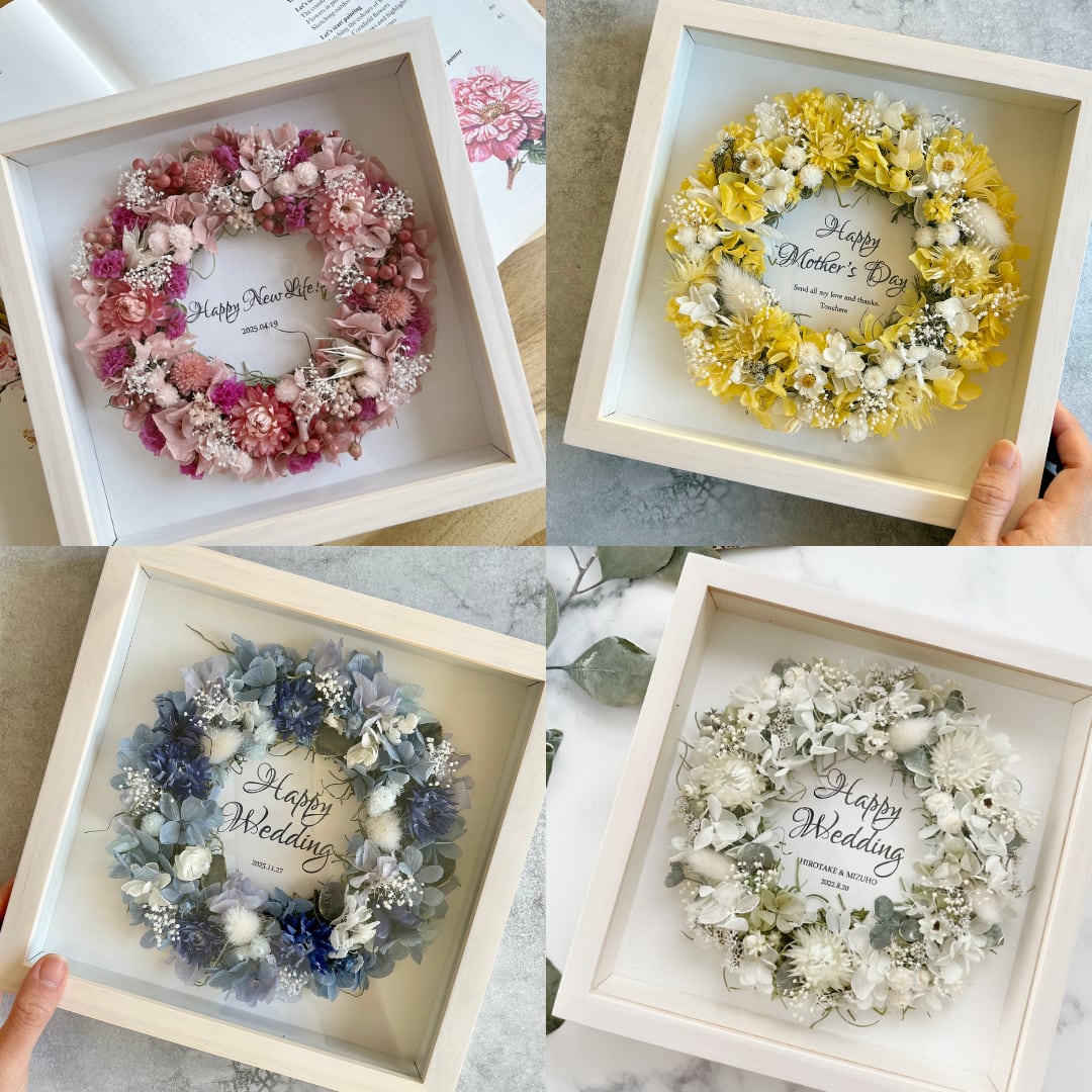 ■素材:ドライフラワー/プリザーブドフラワー/前面アクリル板付き木製フレーム
