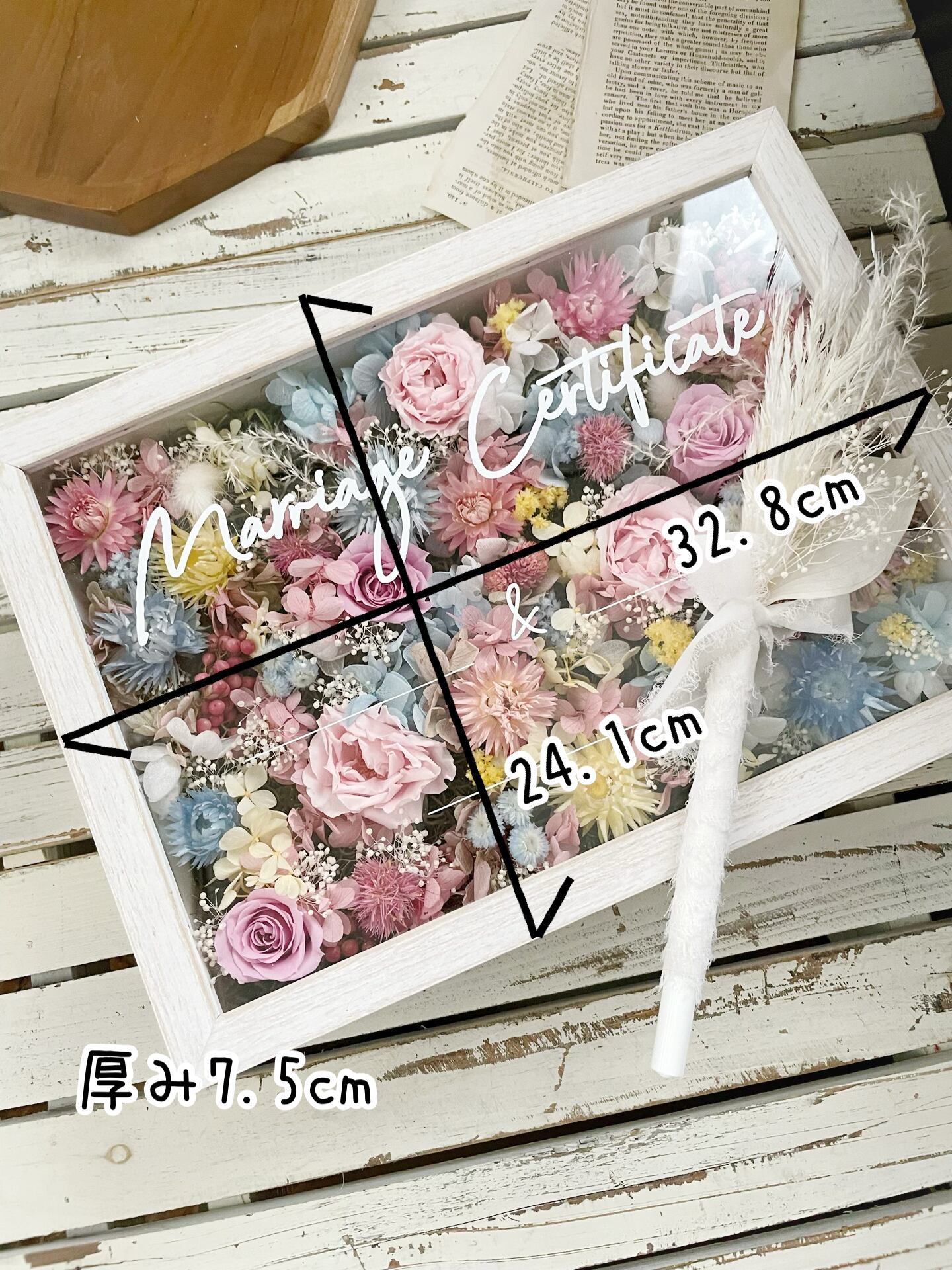 ■素材:ドライフラワー/プリザーブドフラワー/前面アクリル板付き木製フレーム/紐