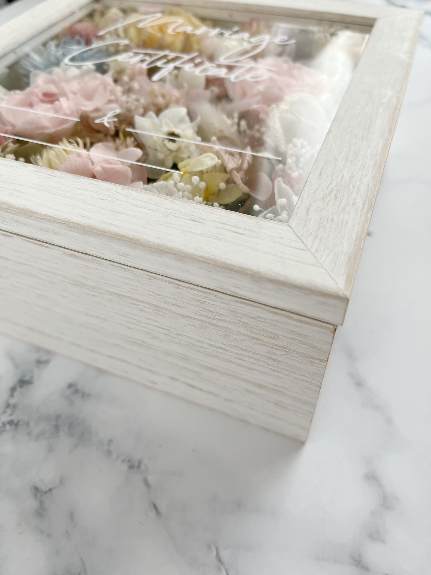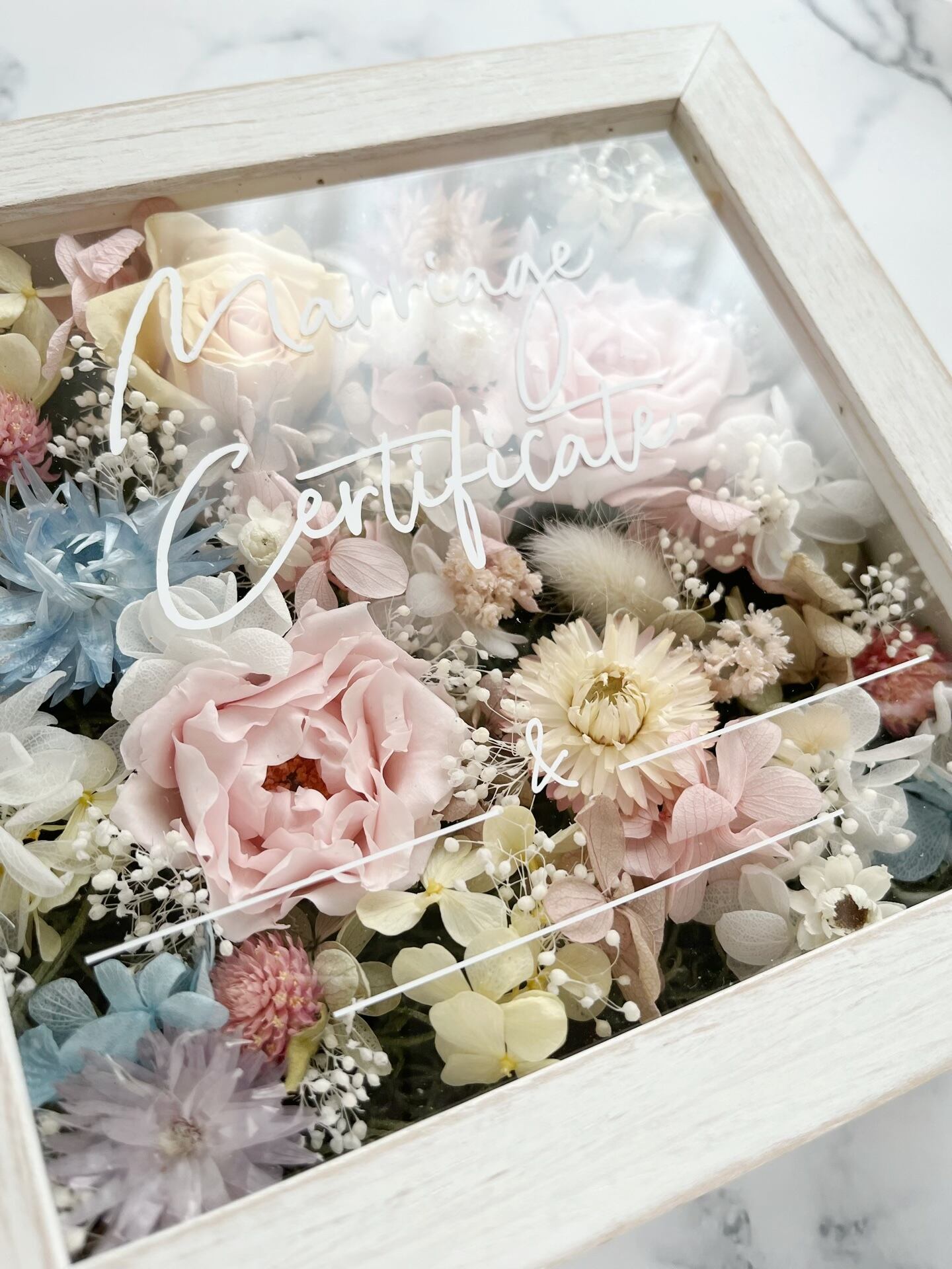 ■素材:ドライフラワー/プリザーブドフラワー/前面アクリル板付き木製フレーム/紐